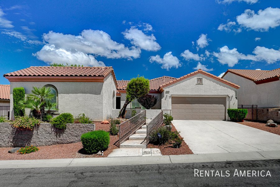 WELCOME HOME TO THIS 55+ COMMUNITY! Beautiful ONE-STORY home w/Casita in SUN CITY ANTHEM! Wrought Iron Railing leads to Courtyard entrance. Large Kitchen with Island, Breakfast Bar, Kitchen Dining area with built in cabinets! Spacious Master bedroom separate Tub/Shower, dual sinks & Walk-In Closet. Enclosed Sunroom patio! FULLY FENCED Backyard with Viewing Platform w/partial Strip & Mountains views! Close proximity to clubhouses and pools! THIS WILL NOT LAST!!