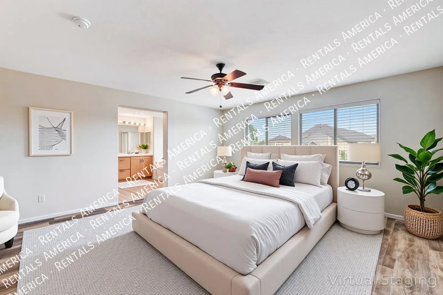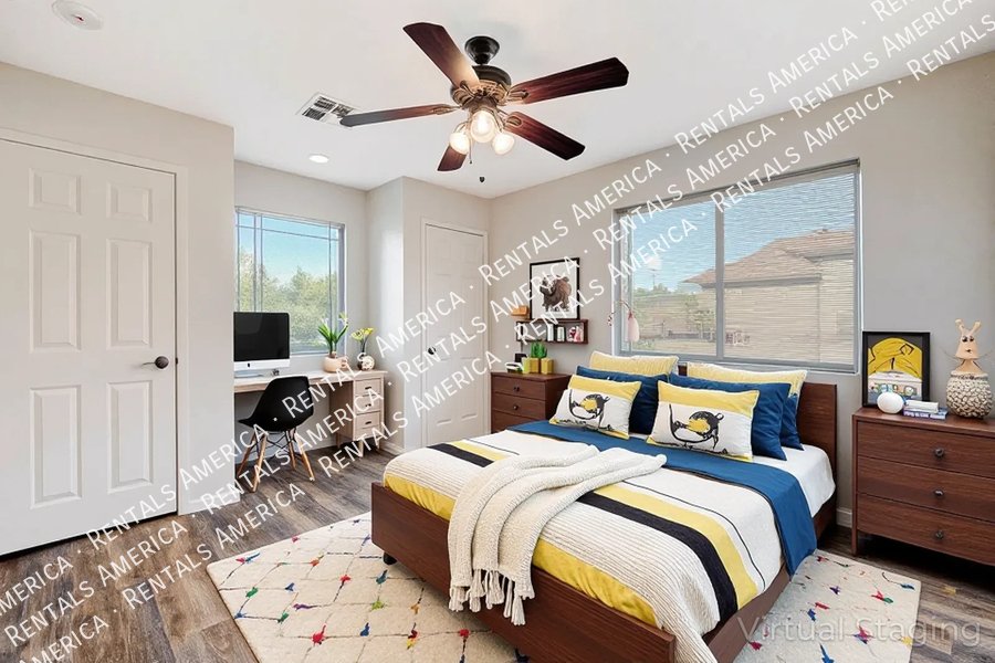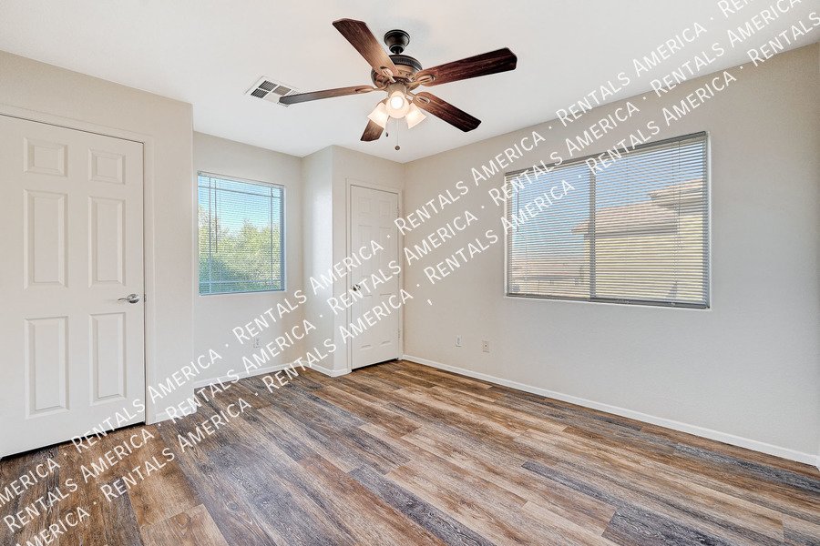 WELCOME HOME to this AMAZING 6-bedroom, 4-bathroom, 3700 sf home in a gated community near Stallion Mountain Golf Club!! Home features laminate floors throughout-NO CARPET!! Additional amenities include, spacious living, and formal dining rooms, w- kitchen that opens into family room! Kitchen boasts Corian counters & separate breakfast dining area!! Bedroom & bath downstairs! 3-car garage! Community has 24-hour security! THIS IS A MUST SEE!!
